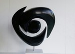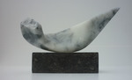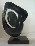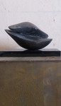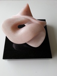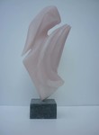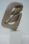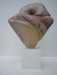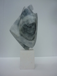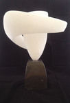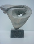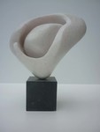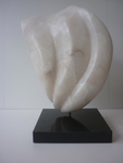 2016Witte albast. Hier is de illusie het grootst dat het om twe losse delen gaat, waarbij de een liefdevol om de andere beweegt. Toch is het een geheel. De kern staat helemaal in balans en de andere vorm zweeft er liefdevol omheen. De perfecte staat van zelfvertrouwen op een minimaal standpunt.