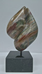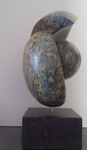 2013Chinese speksteen. Ontstaan vanuit een gebroken beeld. Bij dit beeldje is het thema ontstaan om verder te werken met meerdere vormen binnen 1 steen.